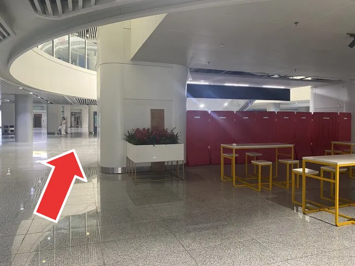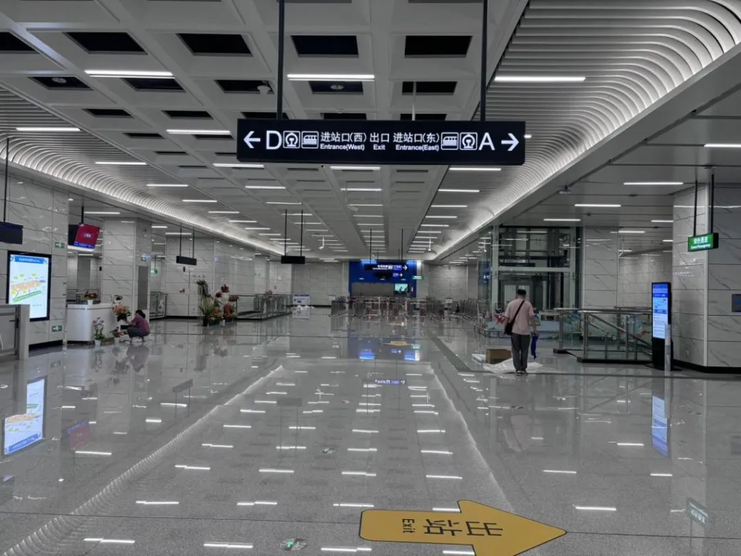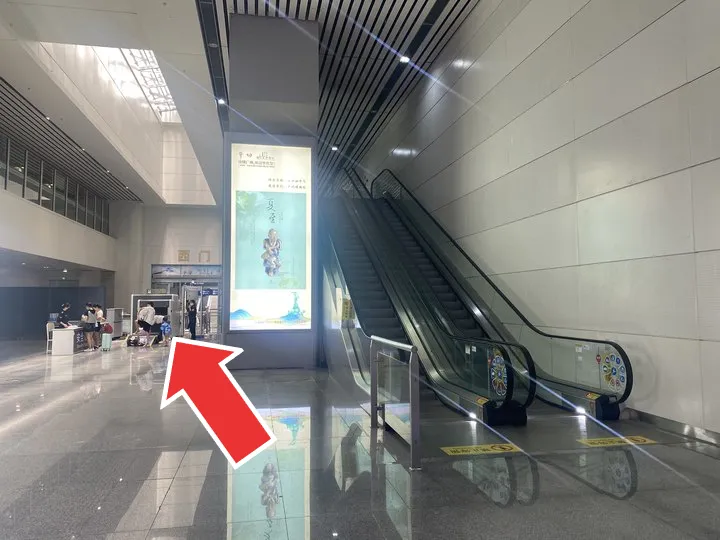 第二步:在扶梯口掉头,找到西进站口方向,过安检后进站,即可找到城际及高铁的检票口。
