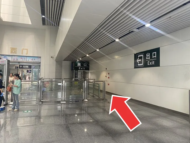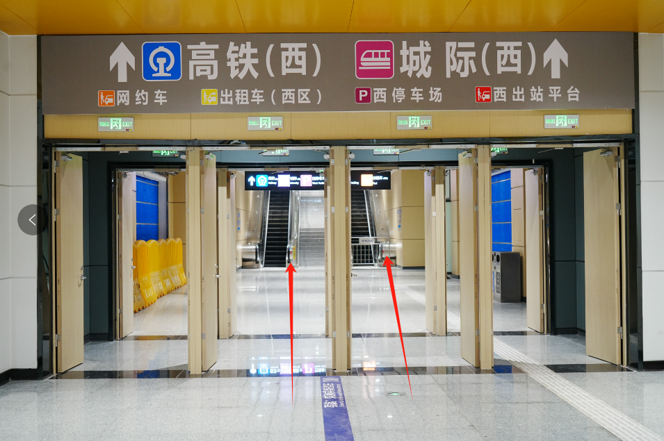 第一步:从高铁或城际出站后,从换乘扶梯下来,往右后方行走约35米到达西出口。