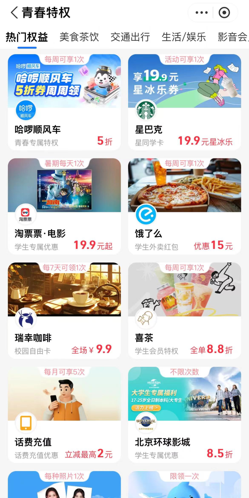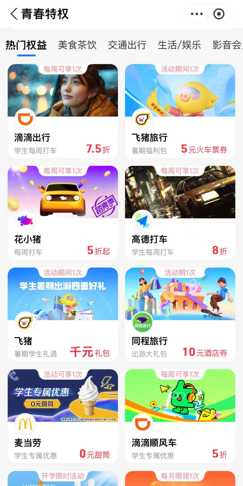美团“美团校园”、携程“校园特权卡”等