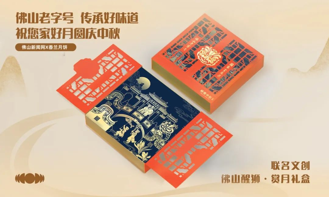 今年,“香兰”全新上市两款联名月饼礼盒,就把醒狮、龙舟、佛山十大传统文化等岭南元素通过国潮手绘的形式融入产品包装设计,其中月饼为经典口味双黄纯莲蓉和火腿咸五仁。