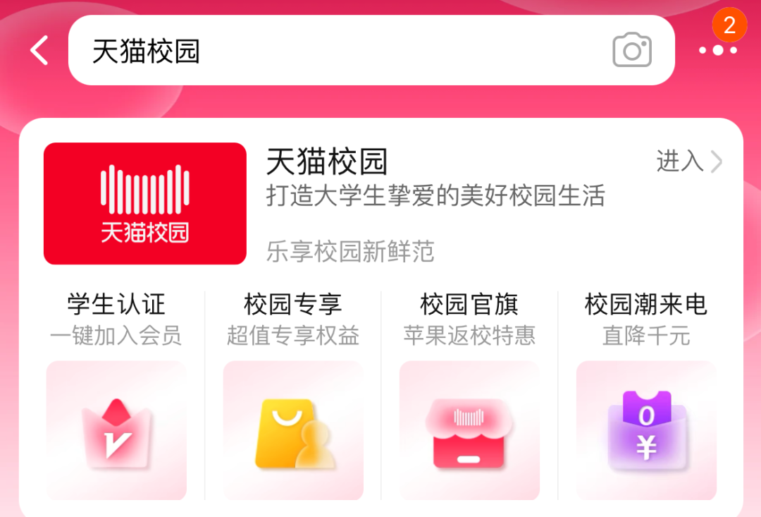 在淘宝APP搜索“天猫校园”,学生认证成功后,可享受部分商品学生价。