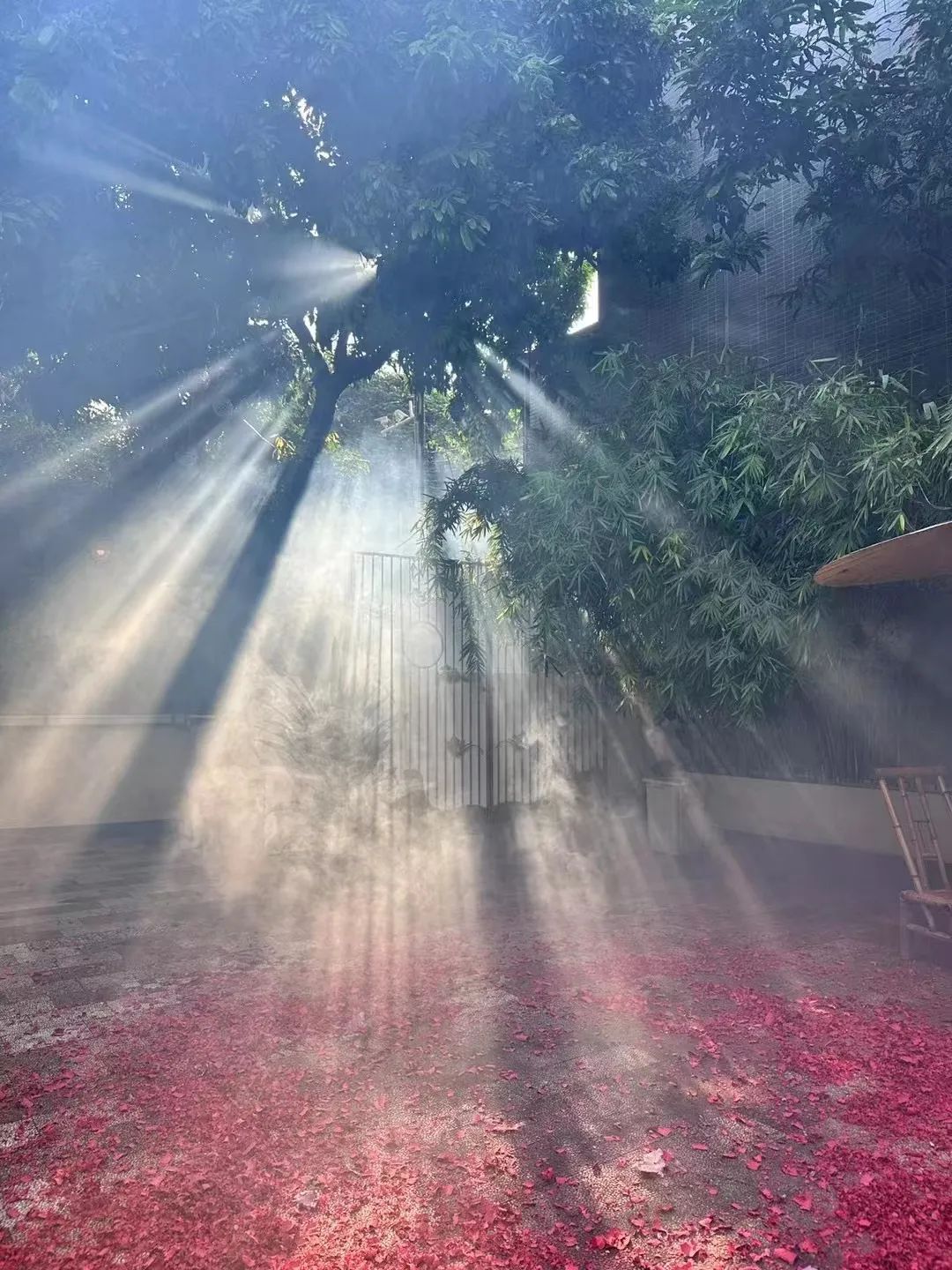 阳光透过纱幔,洒在地面上