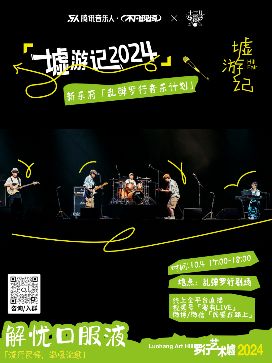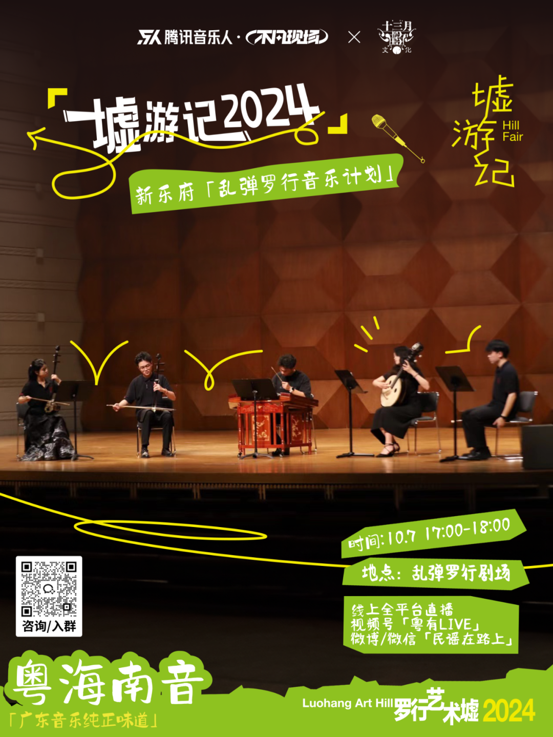 9月30日—10月7日,民谣在路上联合腾讯音乐人不凡现场,在罗行举行新乐府乱弹罗行音乐计划演出,届时,14组风格各异的质感音乐人唱响罗行墟,记得来现场邂逅一场微醺音乐会。