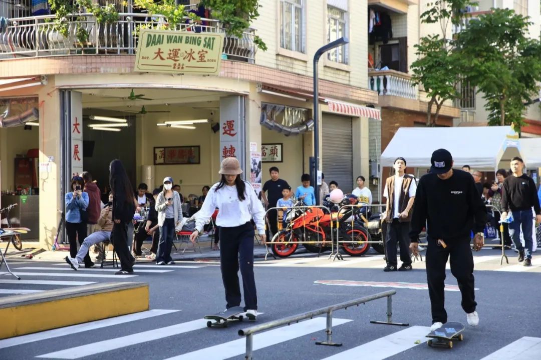 12月1日,大良团工委联合会苏岗社区团委、苏岗辖区内青年小店共同举办青年潮玩街区开幕日活动,进一步营造街区潮玩氛围。共青团顺德区委员会书记欧阳嘉声、顺德区委社会工作部副部长钟旭辉、大良街道办事处副主任、共青团大良街道工作委员会书记胡钊雄等领导嘉宾出席了本次活动。 自今年6月起,在团顺德区委的支持指导下,大良团工委、苏岗社区团委积极发动苏岗的青年店家、居民群众等参与青年街区营造,青年们参与到调研、设计、建设、营造等方面,探索出了由政府主导、青年赋能、多方营造的共建共治新模式,为打造“十村示范”、助力“百千万工程”贡献青春力量。街区里,装置元素有趣吸睛,融合了青年多元文化,有美式汉堡煎蛋舞台、滑板青年喜爱的彩色斑马线、龙舟造型椅子,吸引许多青年前来打卡。