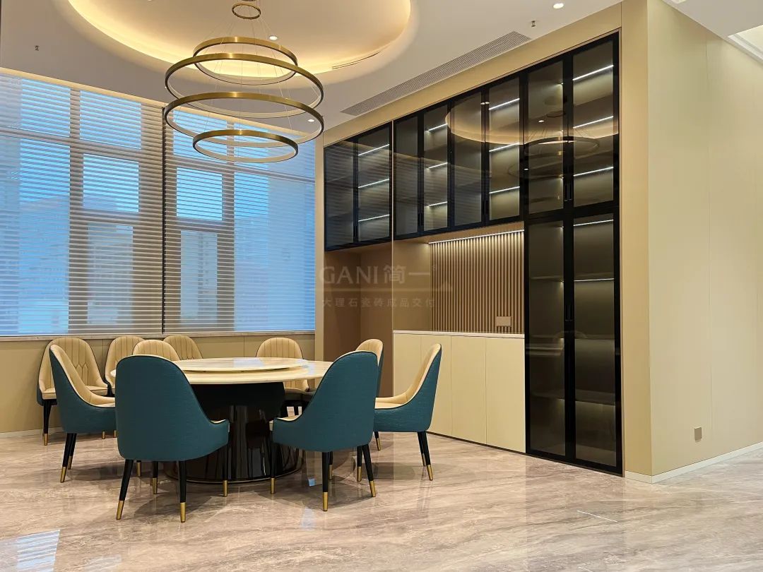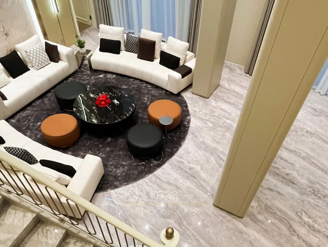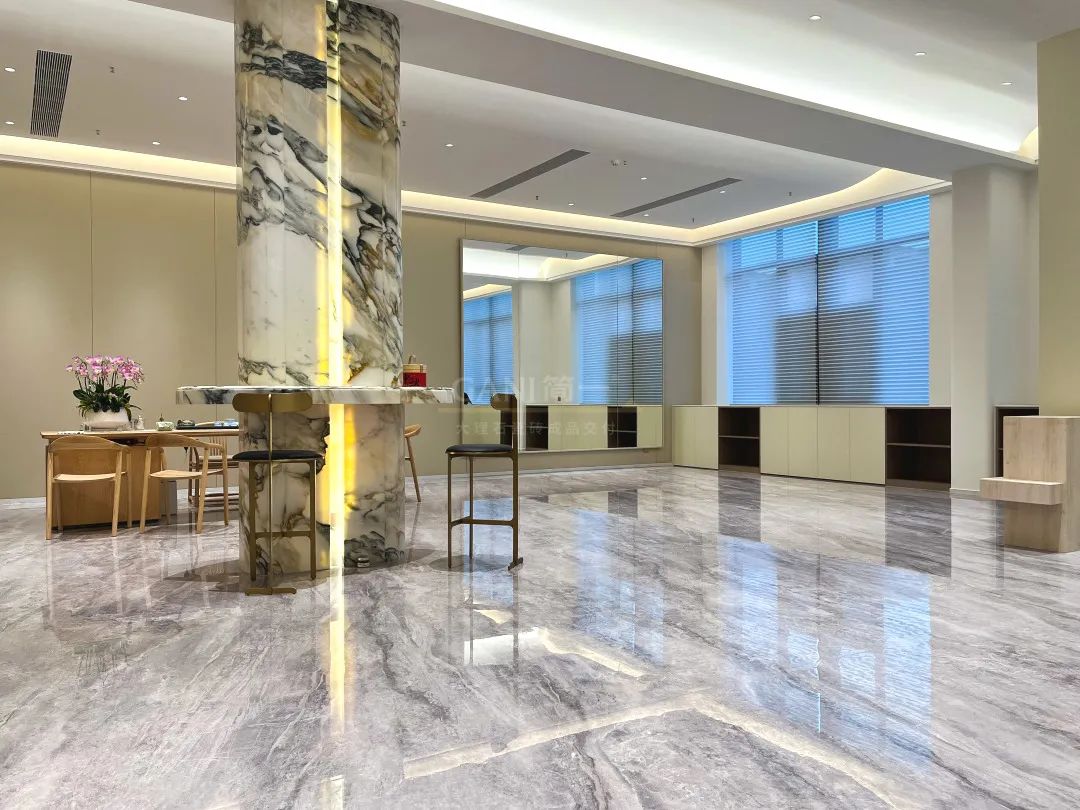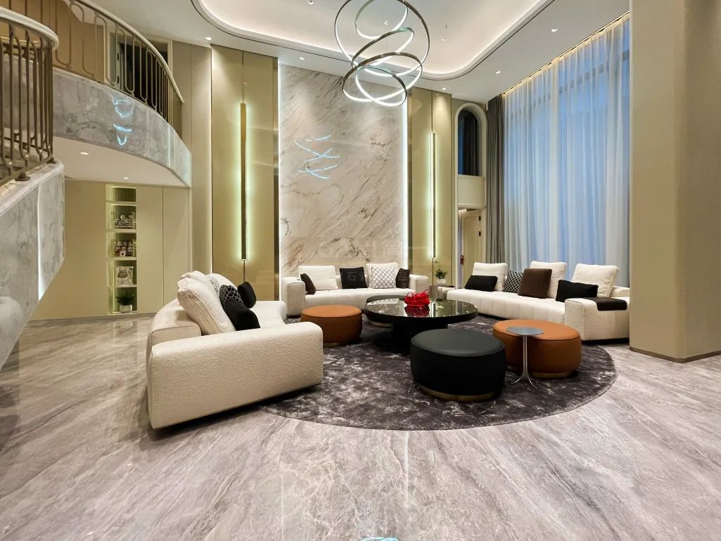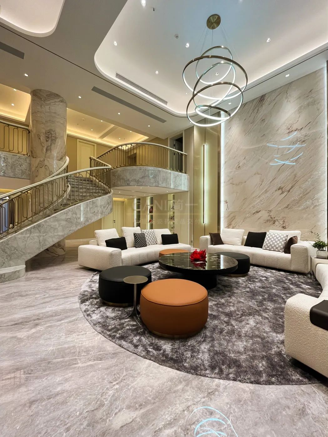 在纷繁复杂的世界里 追求简单而有质感的生活 是对一切美好事物的真挚向往 本期,走进 @广东·东莞 舒展又奢华的千方别墅,一探究竟!一同感受处处丰盈的美好生活方式~ 房屋信息 案例坐标:广东·东莞松湖悦府 案例户型:1000㎡别墅 装修风格:现代轻奢 案例用砖:简一云朵灰、意大利云灰、云雾白 案例鉴赏 本屋亮点:大理石瓷砖<0.5mm密缝连纹 玄关之间 艺术渗透 地面|简一云朵灰实景效果 玄关处,柔和光线巧妙地营造出一种雅致而私密的归家氛围,浅系木饰面搭配线条流畅的大理石瓷砖纹理,打造纯粹的空间底蕴之美。玻璃元素与灵动绿植的加持,建构此处透彻内在。 会客厅 地面|简一云朵灰实景效果 别墅整体设计奢华大气,开阔的挑高布局赋予空间无尽纵深感。家居搭配上不在于物质的堆砌,而在于心灵的满足与愉悦,让向往的生活触手可及。 地面|简一云朵灰实景效果 会客厅布局尺度舒适,生活的幸福密码就藏在其中。地面铺设云朵灰大理石瓷砖,纹理连贯流畅 触感温润如玉,自带一份来自天然的奢华质感,能让人在忙碌与喧嚣中放松下来,用心去感受日常里的每一个细微瞬间。 地面|简一云朵灰实景效果