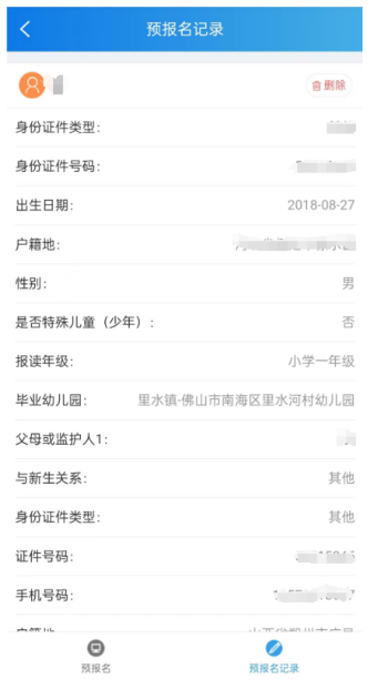 5.预报名限期内,家长如发现填写错漏可以删除重报。
