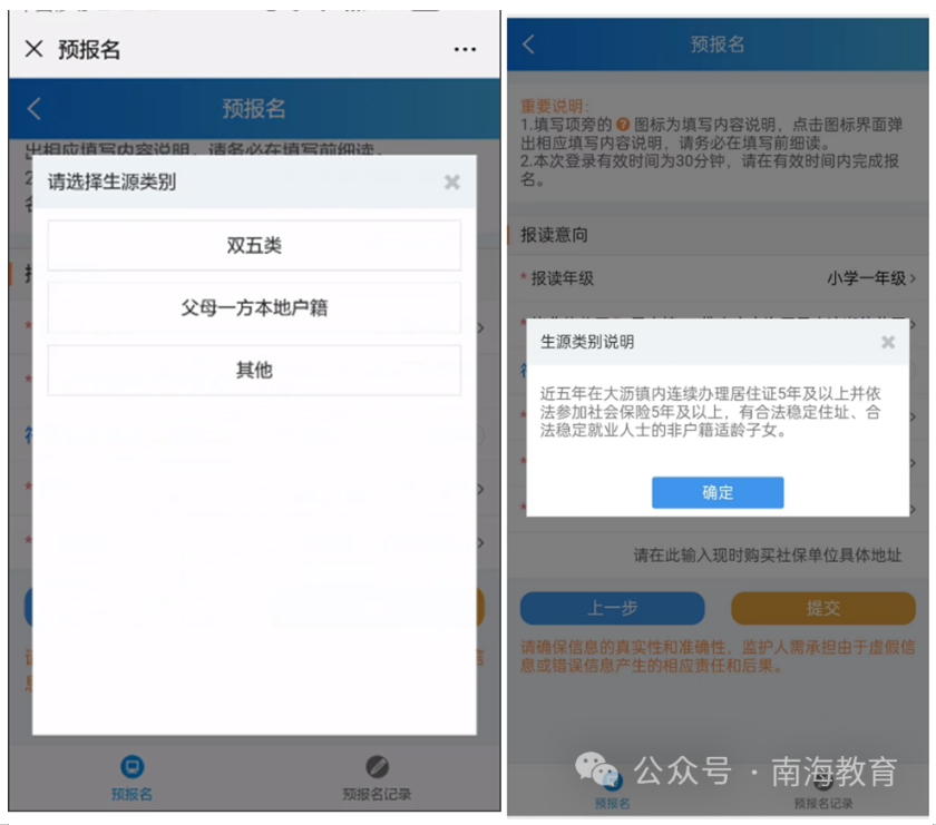 注意:不符合以上条件的可根据自身条件先选报“其他”类型,具体能否录取以4月份(预计)正式报名后的审核结果为准(积分生不属于本次预报名范围,积分入学申请时间,请家长留意2025年各镇街积分服务办公布的积分入学报名指引)。