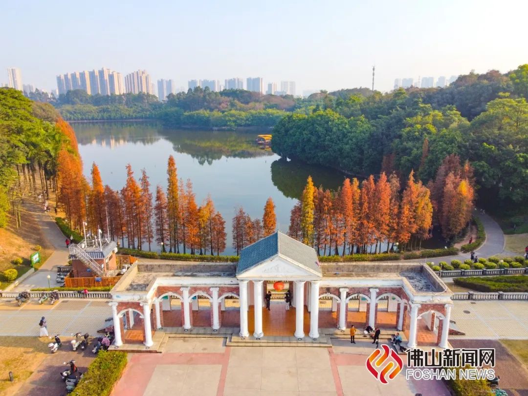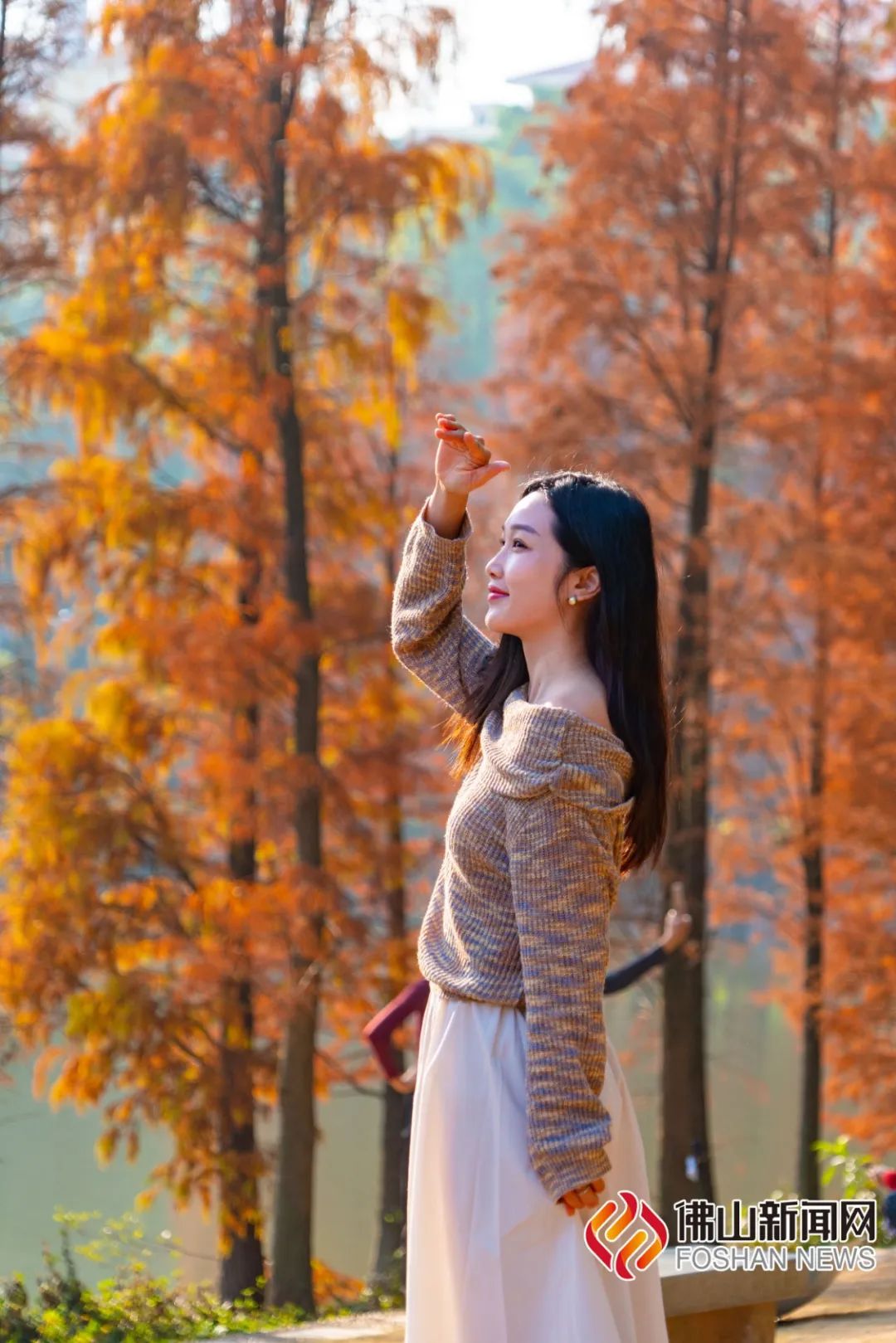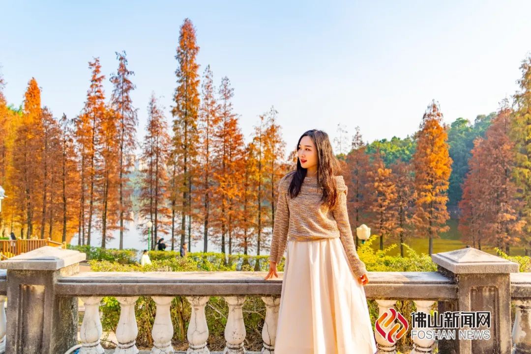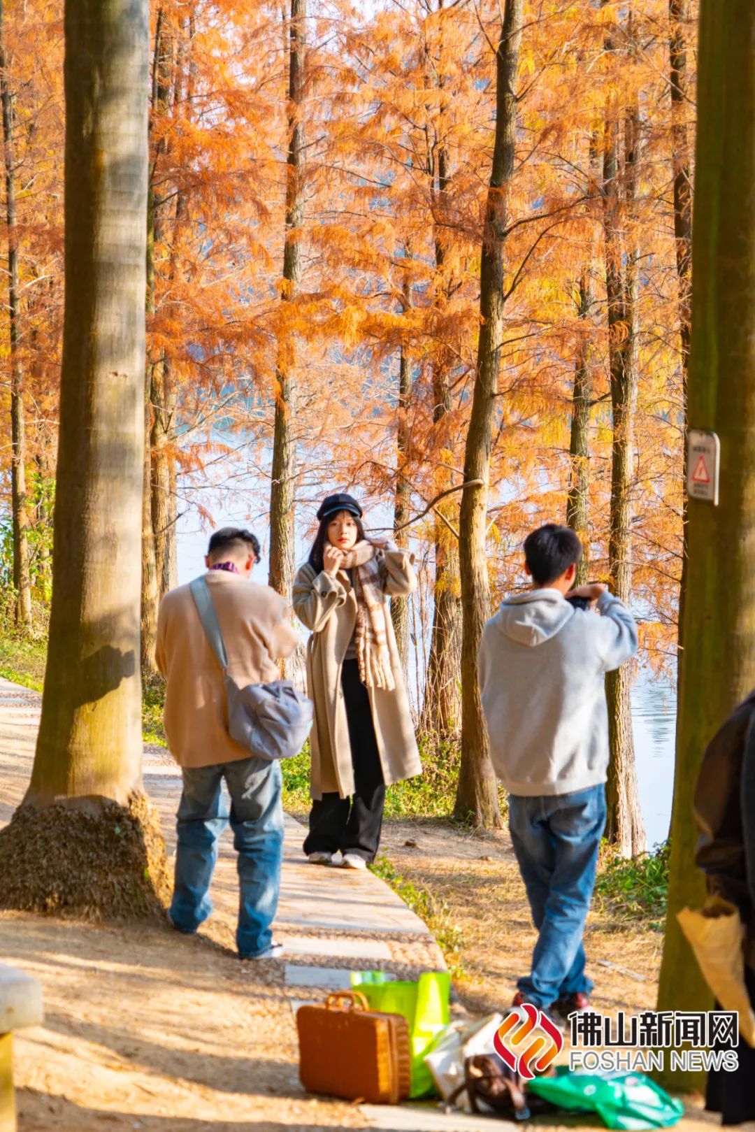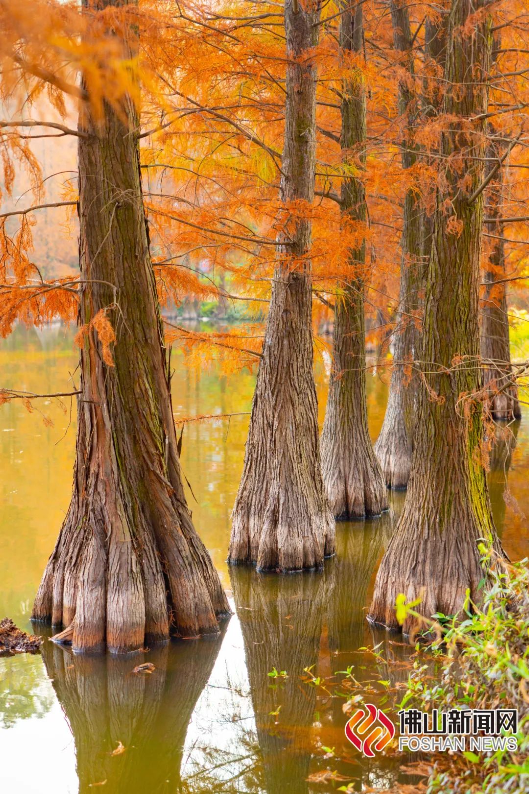 欣赏最佳地点:三水森林公园南湖绿道(免费),直接导航到三水森林公园宣言广场,沿着湖边行走就看到遍红的落羽杉林