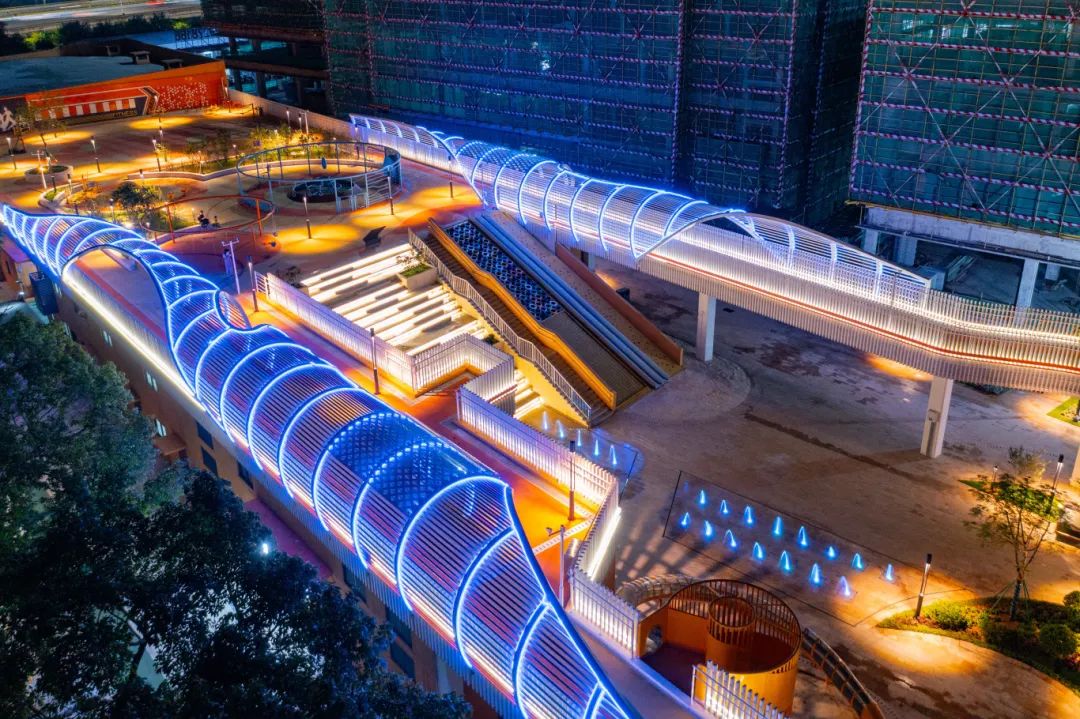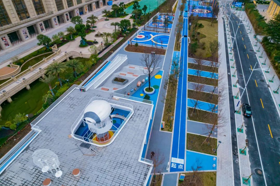 设置了景观天桥、屋顶运动区