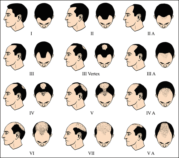男性雄激素性脱发的模式图(来自参考资料)