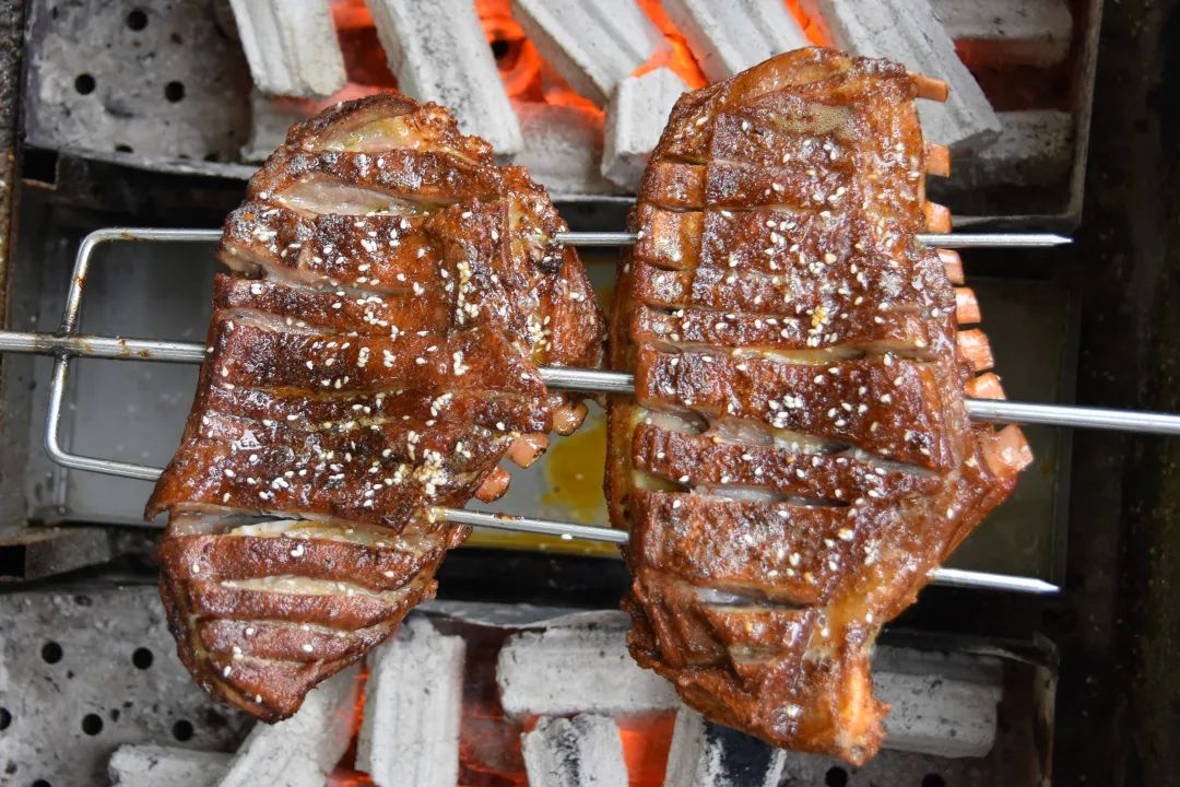 卖鱼灿除了河鲜出色,还有让人闻到就流口水的烤羊排。这块羊排要经历「秘制酱料研制+蒸制+烤制」三大步骤,每一步都马虎不得。也只有炭火烤制,才能将羊排的肉香尽数逼出,烤到滋滋冒油,当肉汁滴入炭火,窜起的火苗和弥漫的烟气,简直太过瘾!