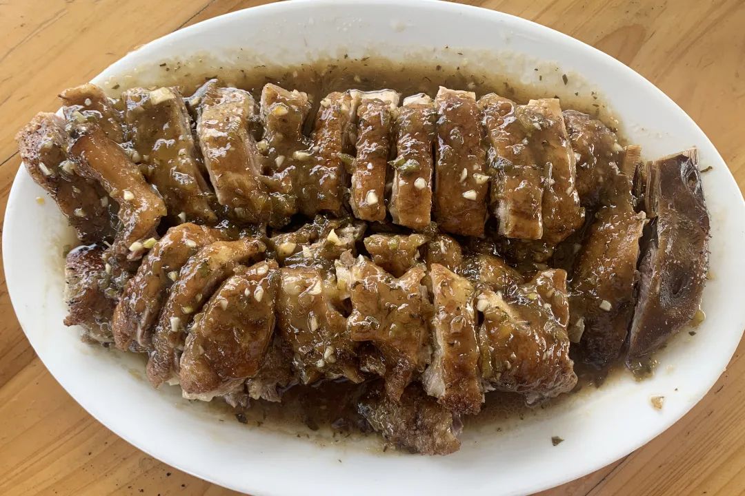 每一块羊排下面都有丰富的油脂,沾上花生芝麻孜然配成的秘制调料,一口下去,羊排外脆里嫩,肥瘦均匀,几乎没有膻味,让人回味余香!此外,这里的七彩捞鸡、烧鹅、各式海鲜、本地农家菜都值得一试。