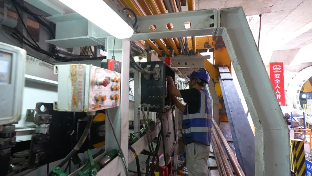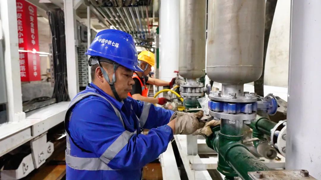 施工现场,中铁七局佛山地铁4号线罗-绿区间作业班长岳亮来回奔走,安排、指挥工人开展盾构掘进各项工作。一边及时检查盾构管片拼装质量,避免隧道出现错台、渗漏等问题;另一边盯控盾构监控系统上各项施工参数,并根据实际盾构施工情况随时调整,确保盾构安全掘进。