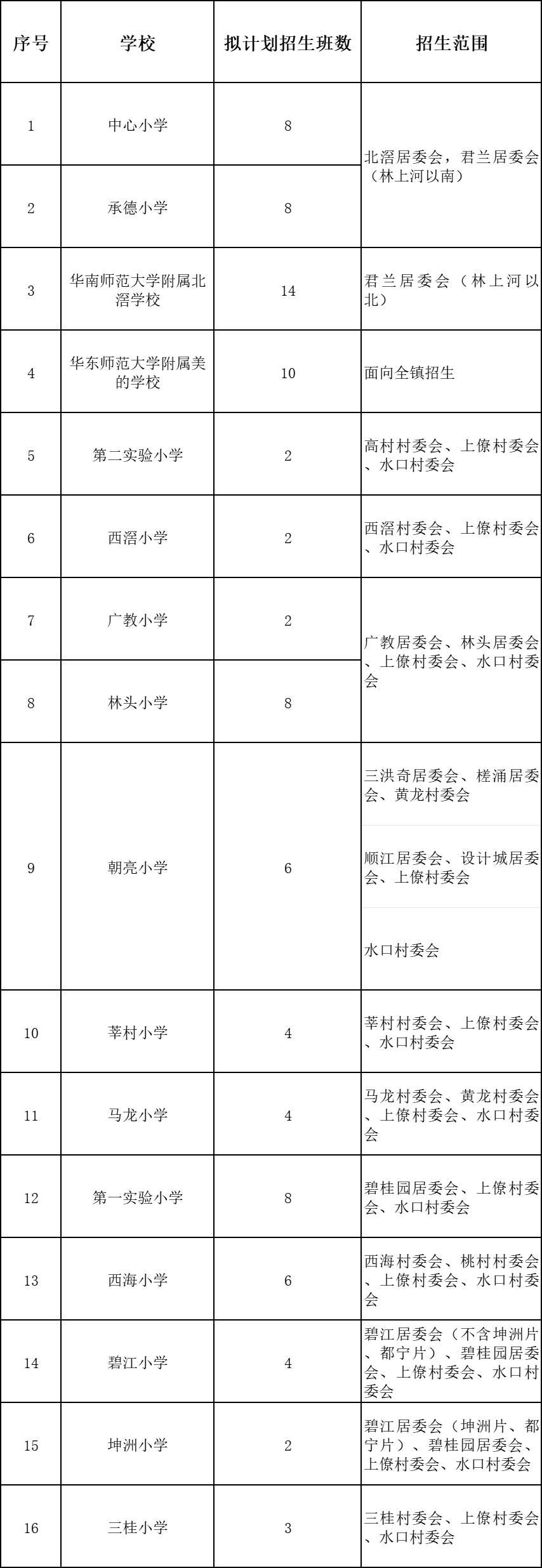 2025年北滘镇公办小学一年级招生共分两个阶段: