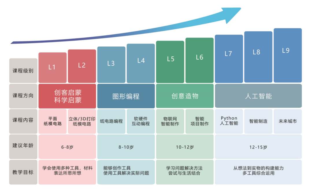 从低年级的“创意启蒙”到高年级的“人工智能”“未来城市设计”,涵盖图形编程、智能机器人等前沿领域。