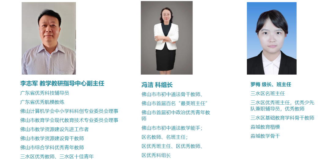 涵盖领航教师、骨干教师、新秀教师梯队,包括广东省优秀科技辅导员李志军、佛山市“最美班主任”冯洁等。