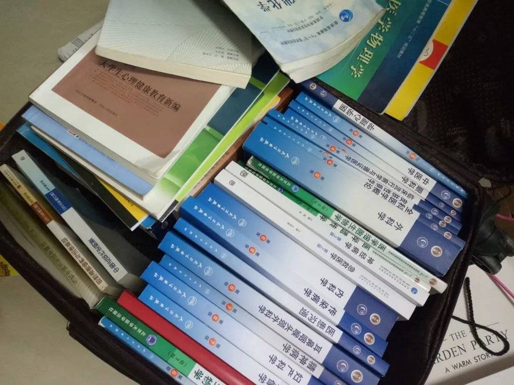周末时,学生们会在图书馆从早待到晚复习。我把大学的所有书籍摞起来,得有2.5米高。毕业后我将有用的专业书收集了起来,装满了32寸的行李箱。