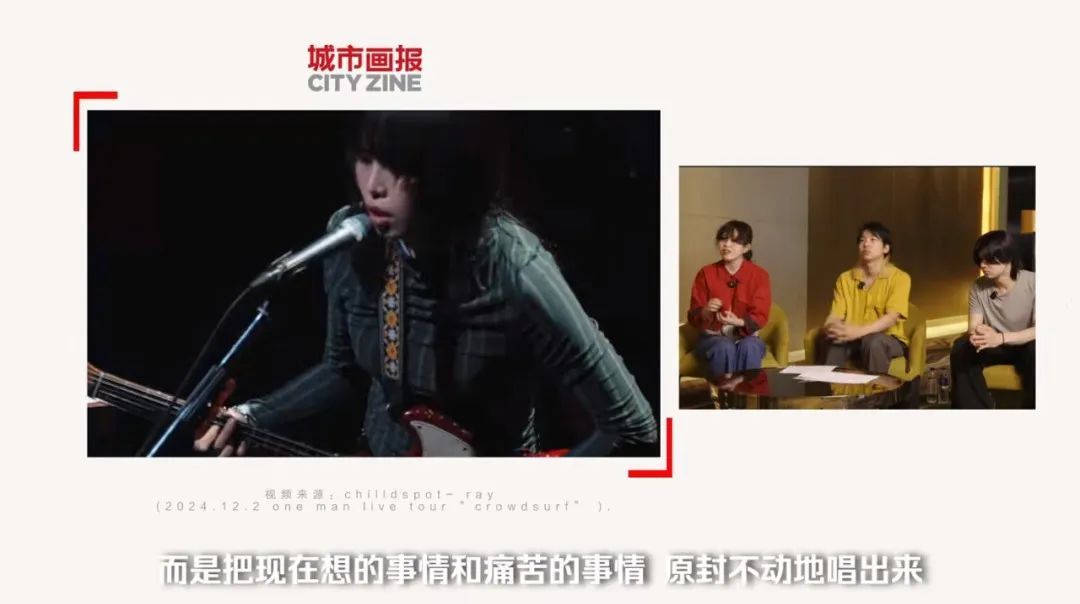 “大家都是东京出身,所以……从某种意义上说是现实主义。” ⽐喻根思考后说道,“不是像浪漫、梦想,或‘胜利!’那样的感觉,而是把现在想的事情和痛苦的事情,都原封不动地唱出来。”