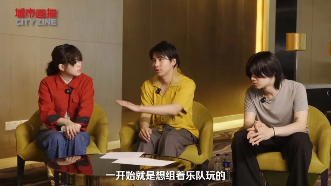 采访伊始,三位来自日本东京的年轻人——主唱⽐喩根、吉他手玲山、贝斯手小崎,用略带紧张但真诚的中文打了招呼。