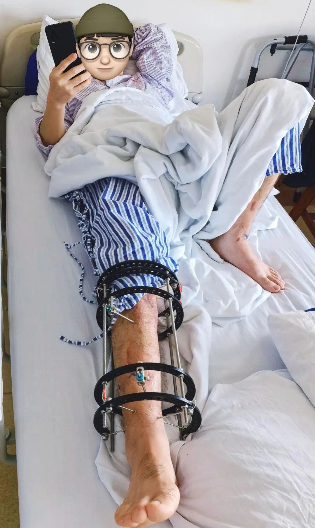 “第一次手术不是终点,而是马拉松的开始。”创伤骨科副主任缪旭东说道。缪旭东介绍,黎先生的保肢之路远比想象艰难。由于创伤严重,黎先生先后经历了外支架固定术:重建骨骼稳定性;多次清创+植皮术:对抗感染并修复软组织;骨移植术:填补缺损的骨组织;功能重建术:恢复关节活动能力。
