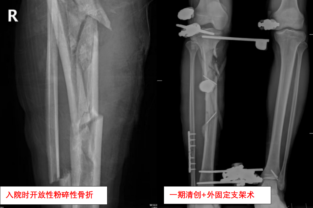 医护团队连夜实施急诊手术:清创、外支架固定、骨牵引、VSD负压引流……4小时的奋战稳住了黎先生的生命体征,也为后续治疗争取了时间。