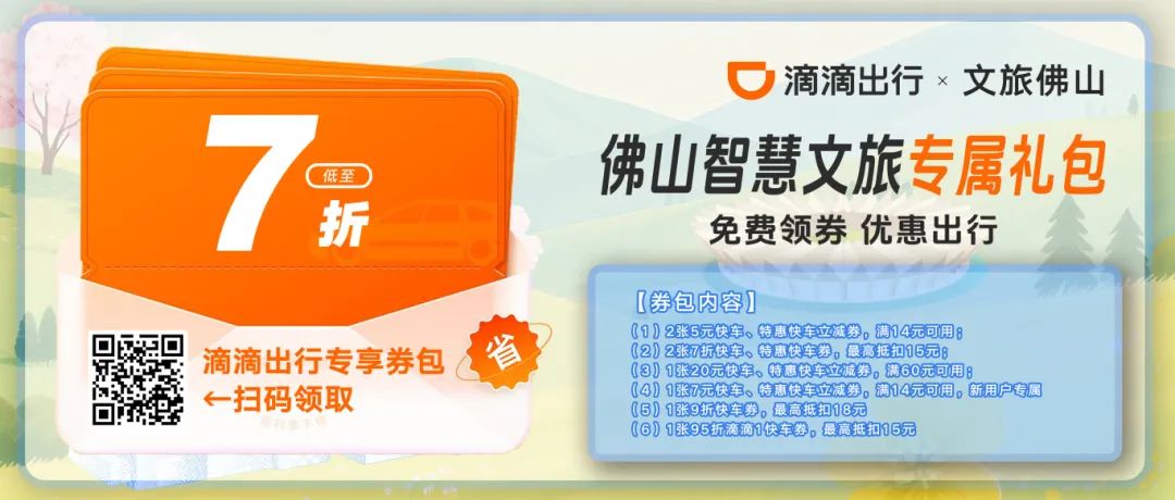夏日炎炎,【滴滴打车×文旅佛山】为广大粉丝朋友定制了“清凉出行券”,首单出行畅享7折起,次单自己享5折,分享好友5折,赶紧来领取福利吧!