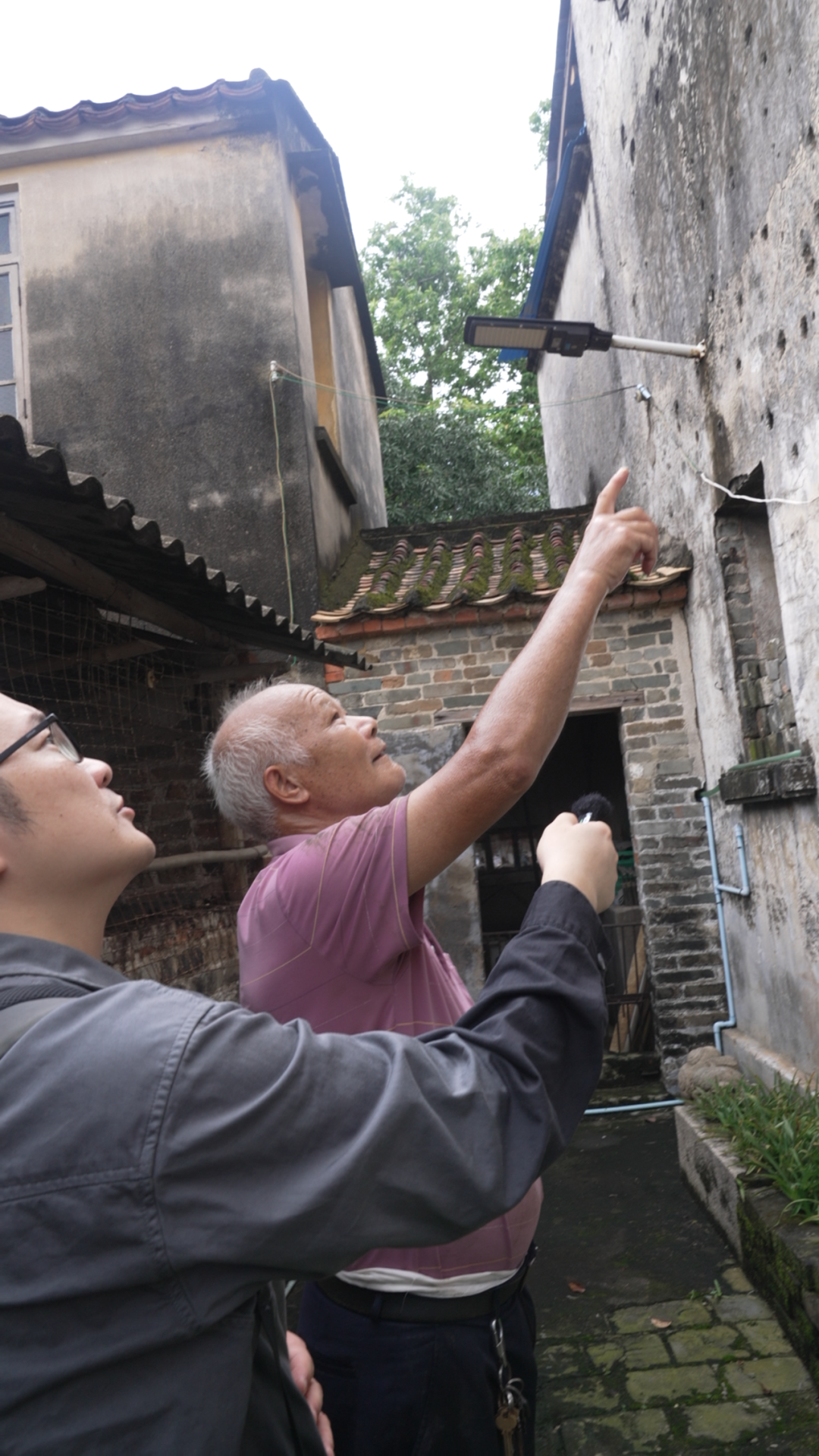 房子旁,72岁的岑国强告诉记者,这座西式别墅是他亲戚在1938年所建,屋主最近一次回来时还再三地说,以后重修房子,这堵布满弹孔的墙要保留下来,保留下去。