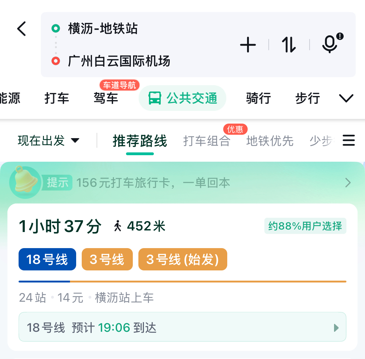 此前,南沙市民前往白云机场需先搭乘地铁4号线或18号线,再换乘地铁3号线前往白云机场,全程耗时较长(超1小时30分钟)。