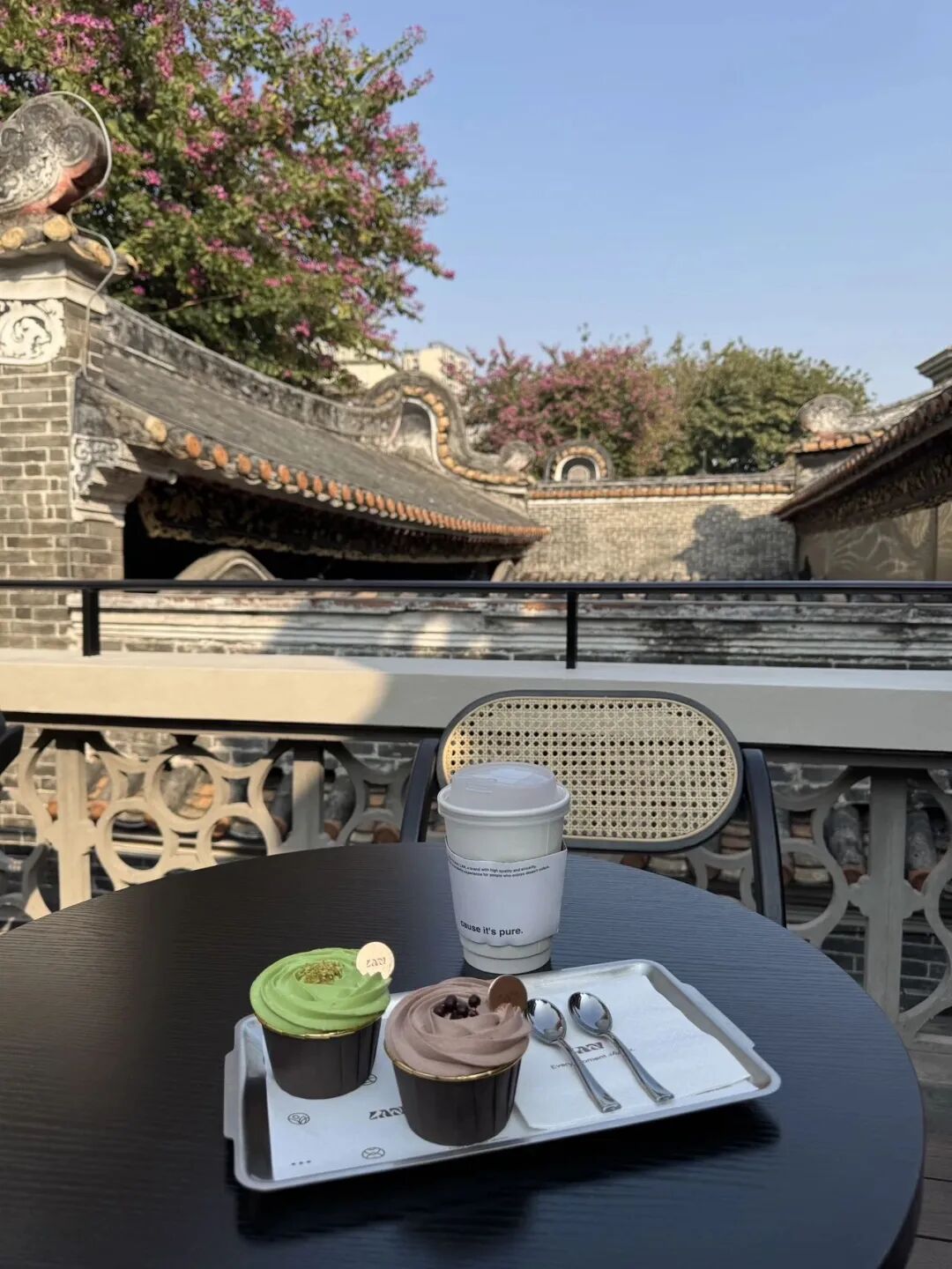 一边欣赏岭南新天地独特的岭南风格建筑 一边喝着咖啡吃着蛋糕 松弛感狠狠拿捏了 LAN一见岚(岭南天地店) ⏱️营业时间:10:00-22:00 推荐:日落保加利亚玫瑰杯子蛋糕、苏黎世拂晓开心果杯子蛋糕等等。
