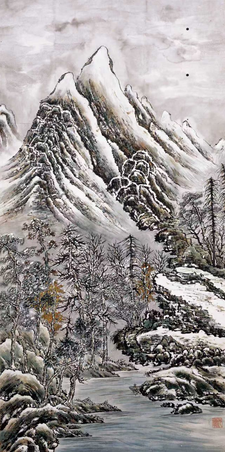 何香凝是中国近现代集政治活动家与艺术家于一身的伟大女性。创作于20世纪40年代的《枫林雪景》,充分体现其艺术特色与精神追求。画面以冬日山林为景,笔墨兼具传统山水画的写意灵动,于苍茫冷寂中透出生命的坚韧意趣。