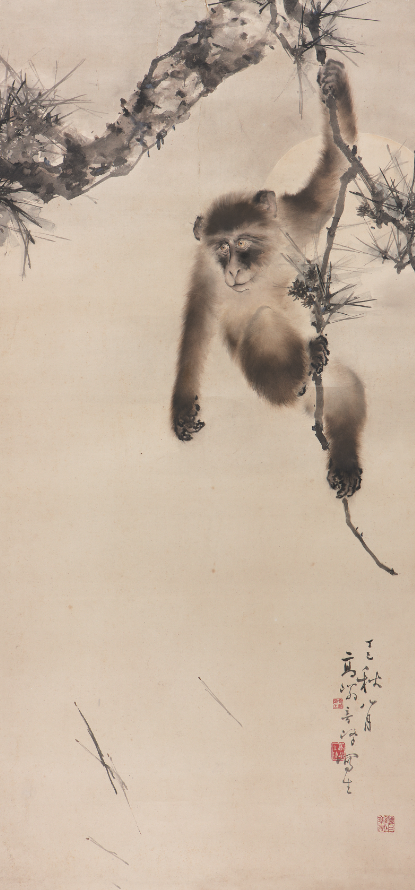 高奇峰 松猿图 1917年 中国画 134.5cm×65cm 广东省博物馆(广州鲁迅纪念馆)藏