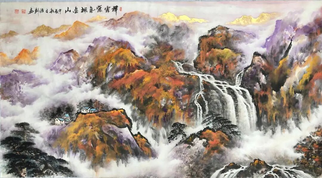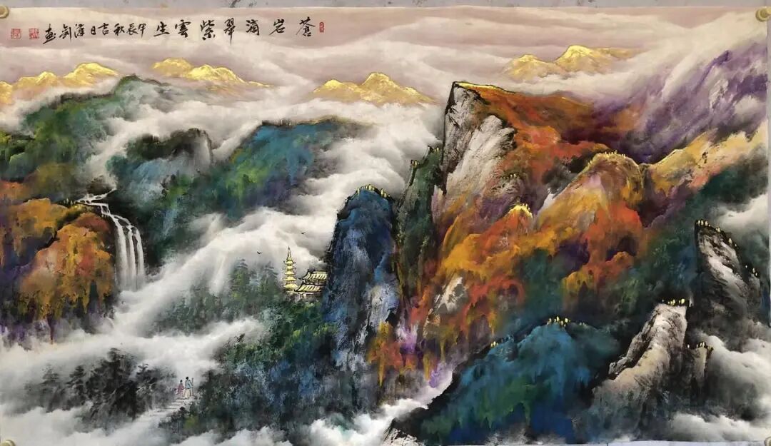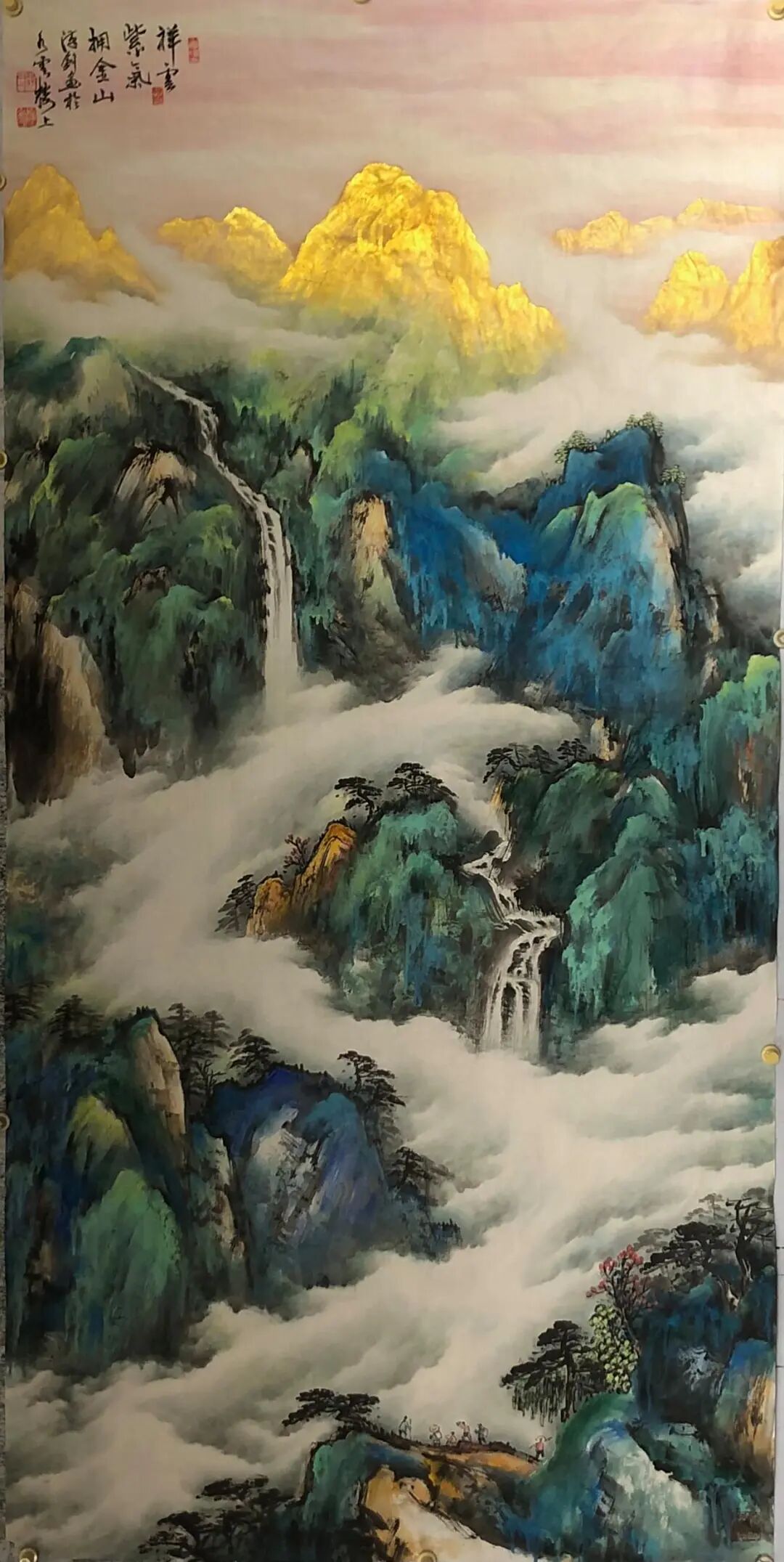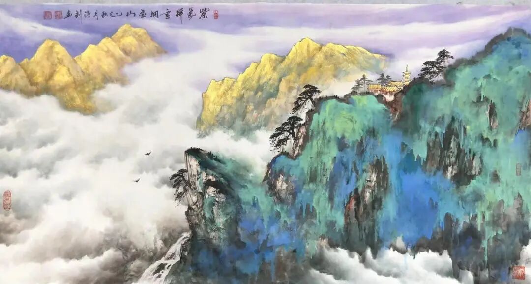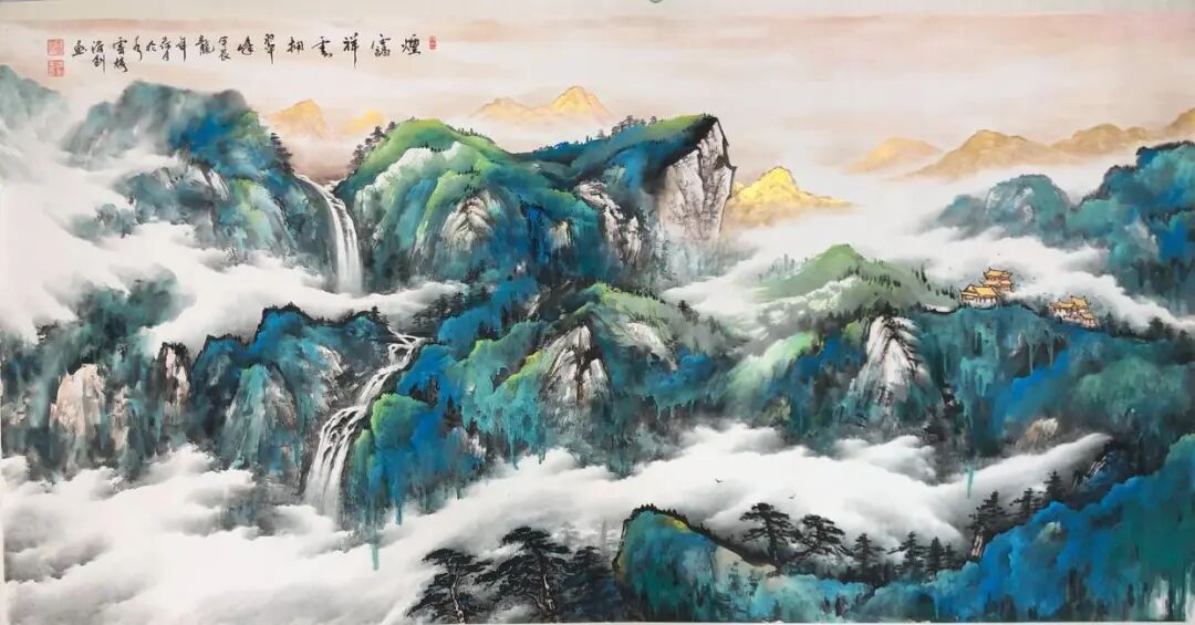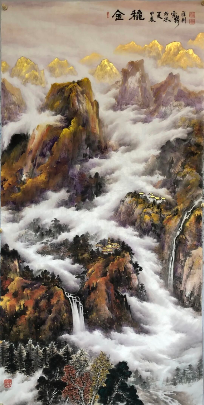 《祥云瑞彩拥金山》200x100cm