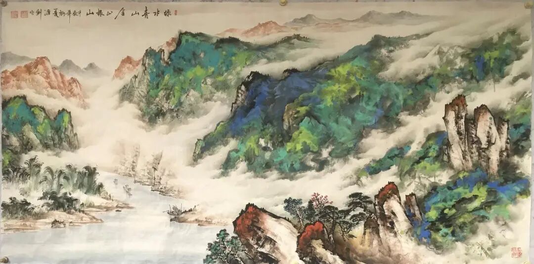 《绿水青山、金山银山》200x100cm