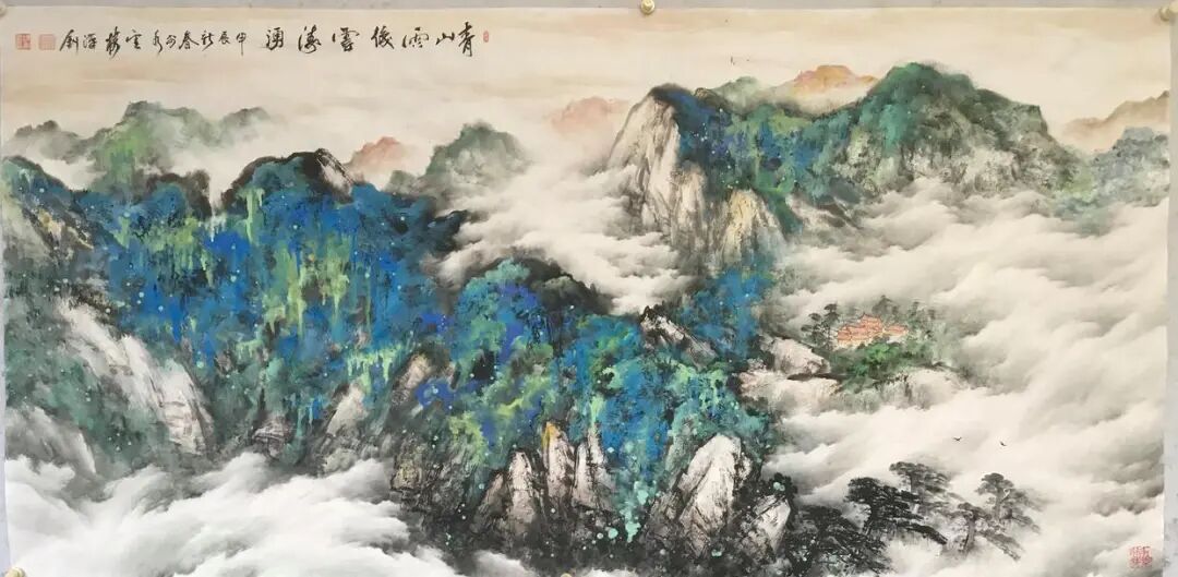 《青山雨后云涛涌》200x100cm