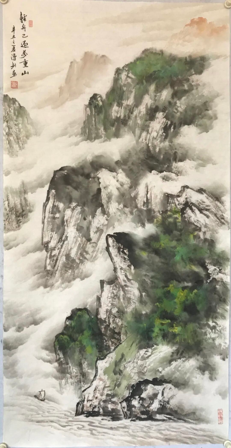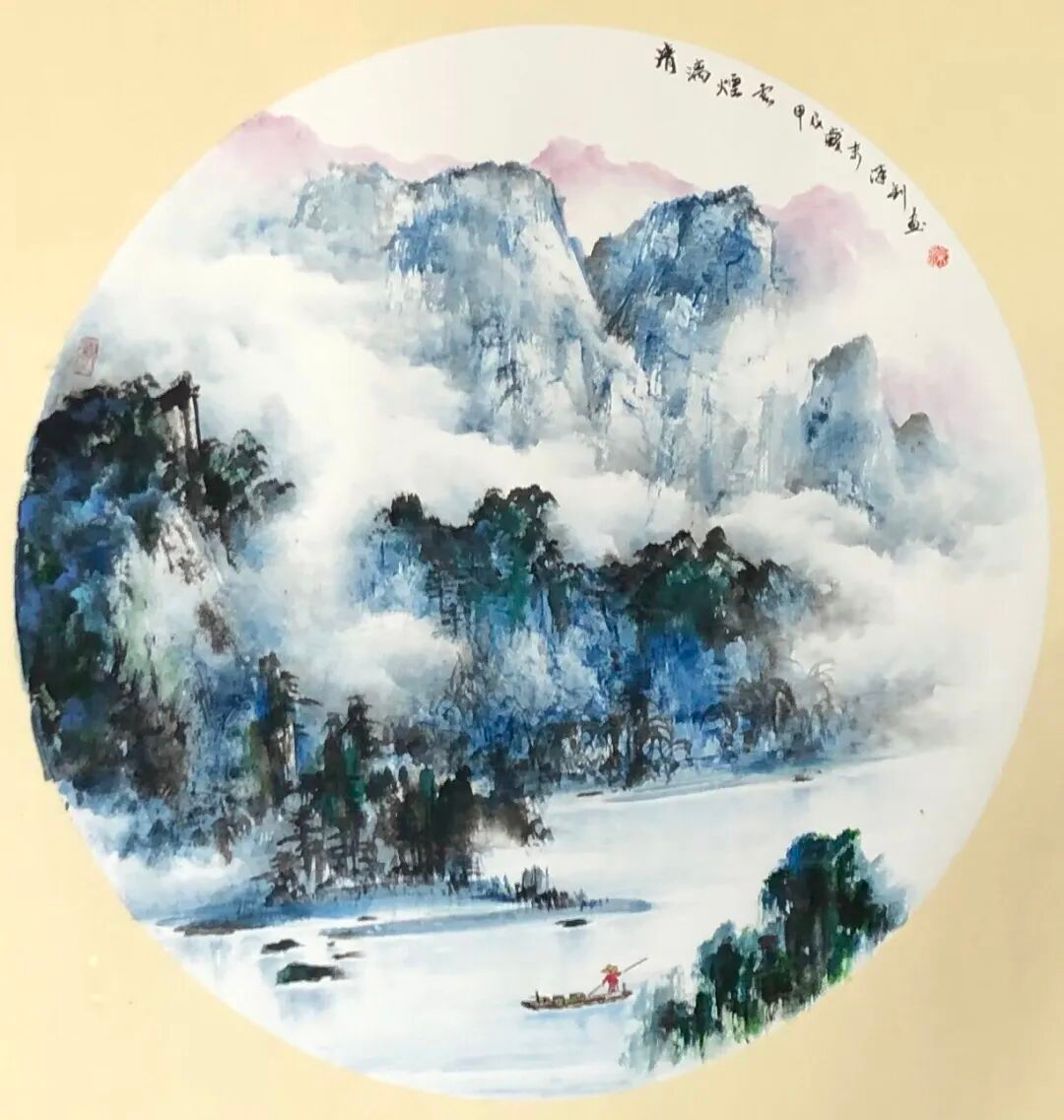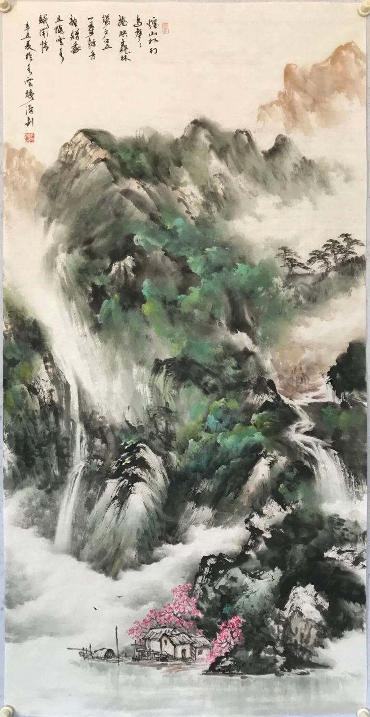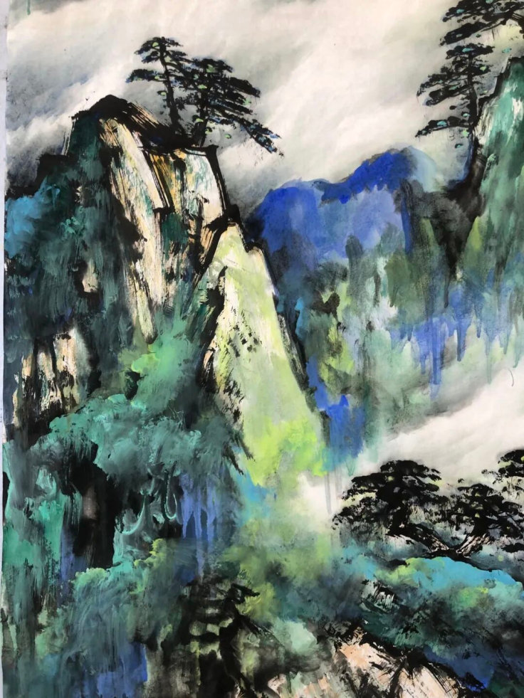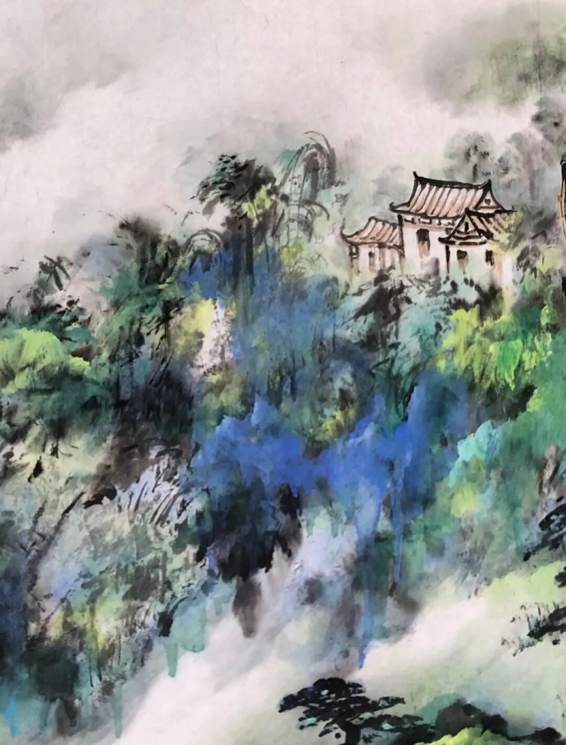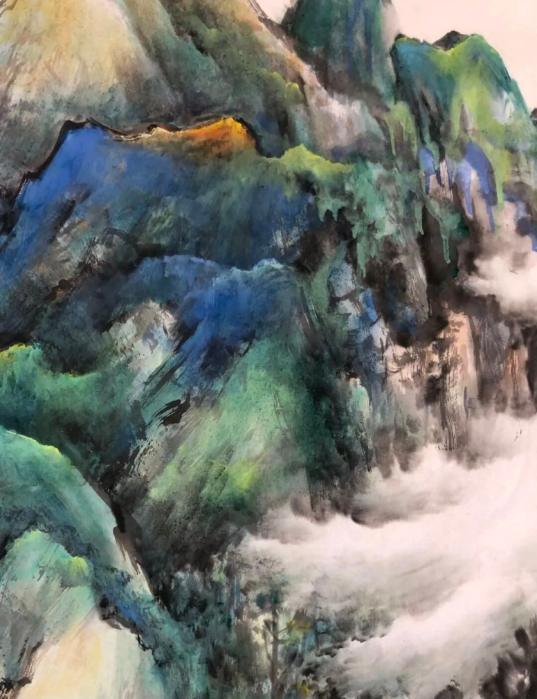 梁汉钊的山水画,一直在追求变化和创新,纵观其作品,既有古色古香的传统山水,又有大笔挥洒的泼墨山水;既有富丽典雅的绿水青山,又有迷蒙变幻的水墨烟云;既有北派山水的雄强浑厚,又有岭南山水的细润温柔。
