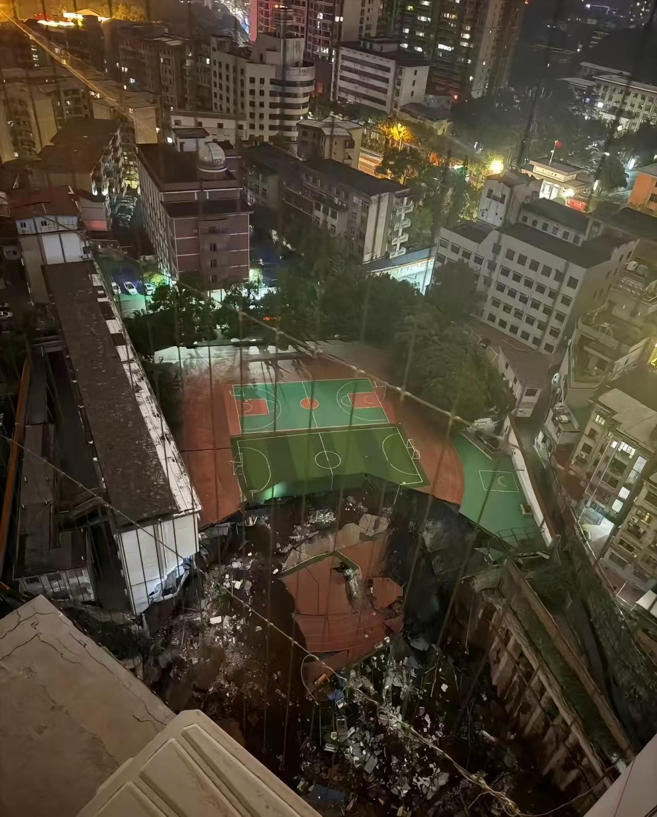 17日晚,多位网友发文称,邵阳市资江学校“塌了”。相关视频显示,学校操场大面积塌陷,形成废墟。