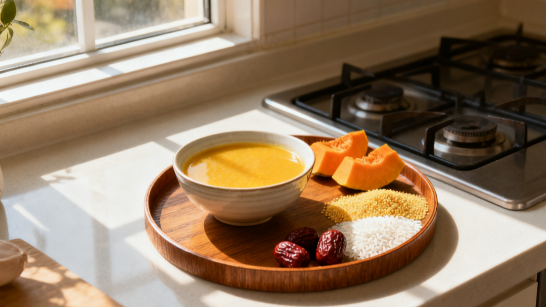 有“秋季第一瓜”之称的南瓜,味甘,性平,入脾胃、肺经,具有补中益气、健脾益胃、润肺化痰、解毒消肿的功效。《滇南本草图说》中提到南瓜“补中气而宽利”,《医林纂要》曰“益心(胃),敛肺”,适合脾虚食少、久病气虚、气短倦怠、肺燥咳嗽等人群。搭配上健脾和胃的大小米,养血安神的红枣,汇成一道香甜软糯的羹食,老少咸宜。