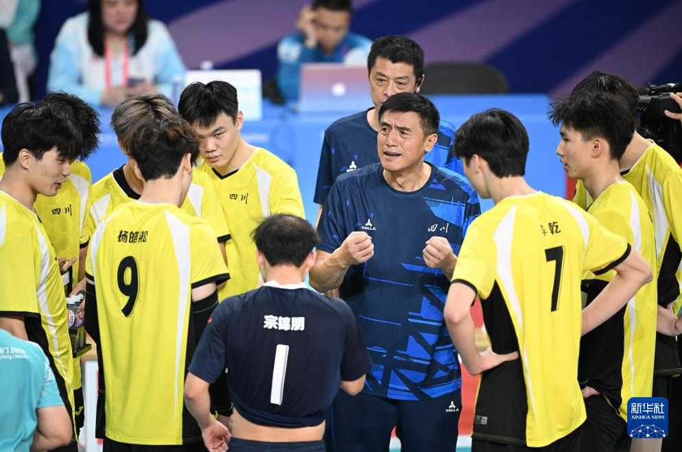 11月10日,四川队主教练廖廷彬(中)在比赛中指导。