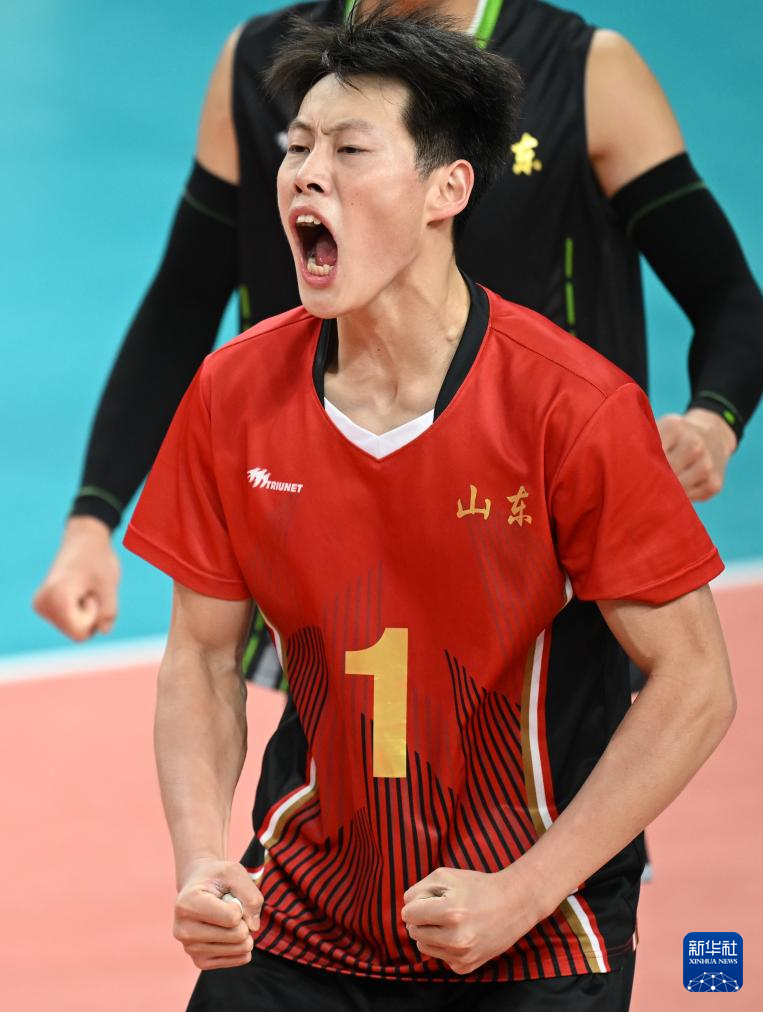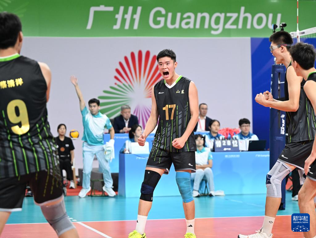 当日,在广州进行的第十五届全国运动会排球男子20岁以下组四分之一交叉赛中,山东队3比0战胜四川队。