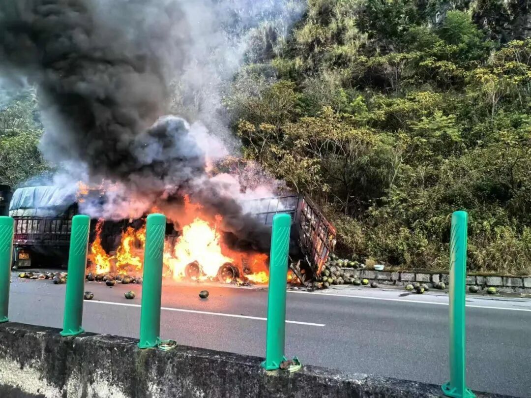 高速上冷藏货车起火,车上10吨金针菇被烤熟......