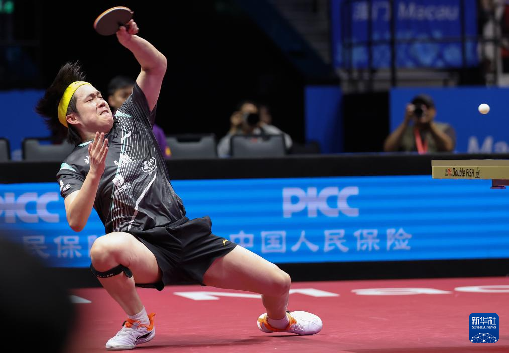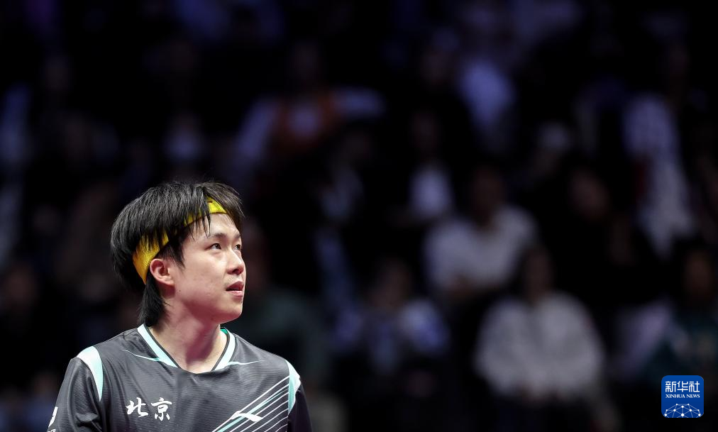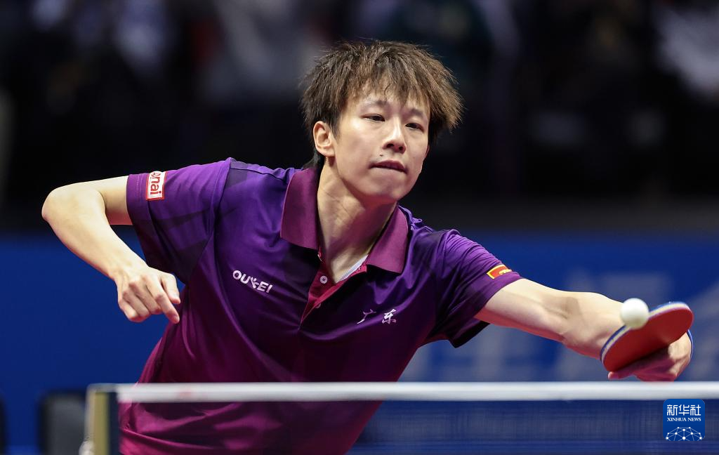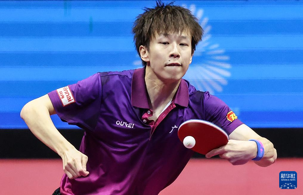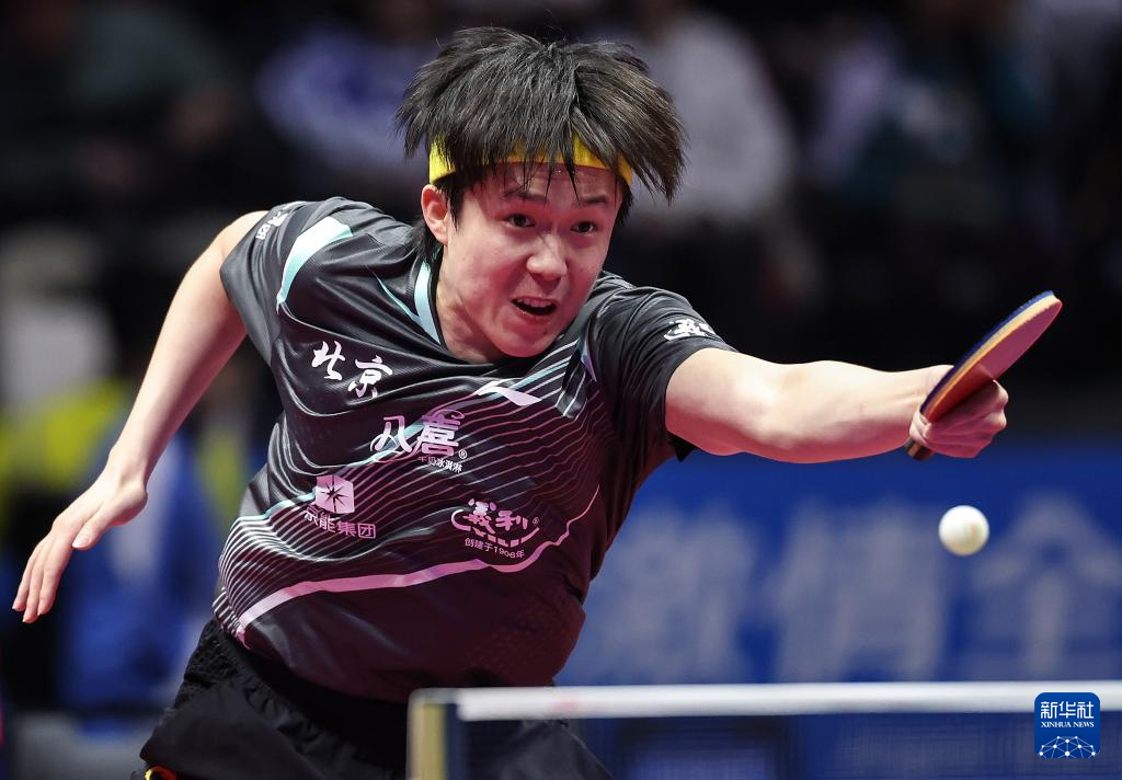 11月13日,北京队选手王楚钦在比赛中回球。