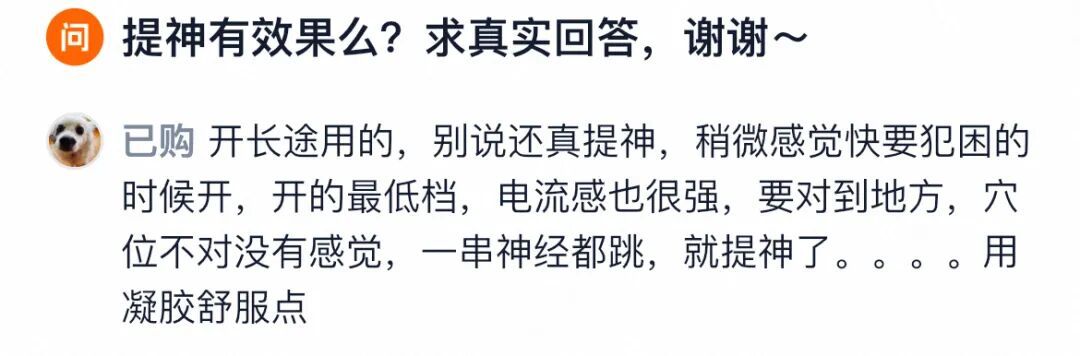 有不少消费者在购买后分享自己的使用体验,称快要犯困的时候用,用的最低档电流感也很强。