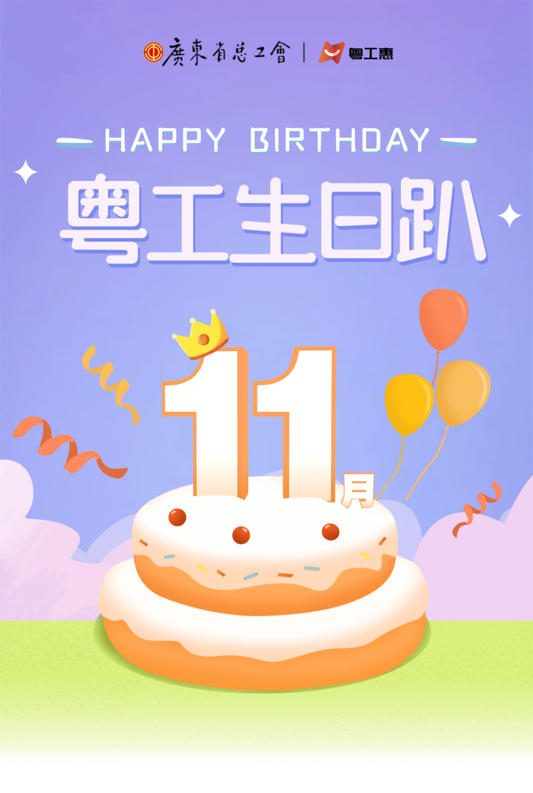 今天,我们聚在这里 是为了给十一月的寿星们 庆祝生日 现在,开始倒数 3...2...1 一起双击下方的草莓栗子蛋糕 点亮生日蜡烛 11月生日的你 也别忘了领取“娘家人” 为你准备的专属礼物 满20.01减20,微信支付立减 活动时间内 点击下方小程序卡片 进入活动页面领取福利 11月15日 9:00 - 11月20日 18:00 生日在11月的 粤工惠实名认证会员 先到先得,领完即止 “粤工生日券”仅能用于 在广东地区经营并开通微信商户号的 线下实体商户门店 生日券有效期为 11月15日-12月15日 逾期未使用则自动失效 (1)满足“粤工生日券”使用门槛自动抵扣面额,一次性全额使用,不找零、不重复使用; (2)消费者在最终支付环节使用微信支付即可抵扣使用; (3)“粤工生日券”无法在转账、红包、个人收款码支付等社交支付场景使用; (4)“粤工生日券”使用有效期为11月15日至12月15日,逾期将作废; (5)“粤工生日券”不能相互转赠。 祝你生日快乐 愿你每一岁 都奔走在热爱里 @11月的寿星 记得定好闹钟 准时领券
