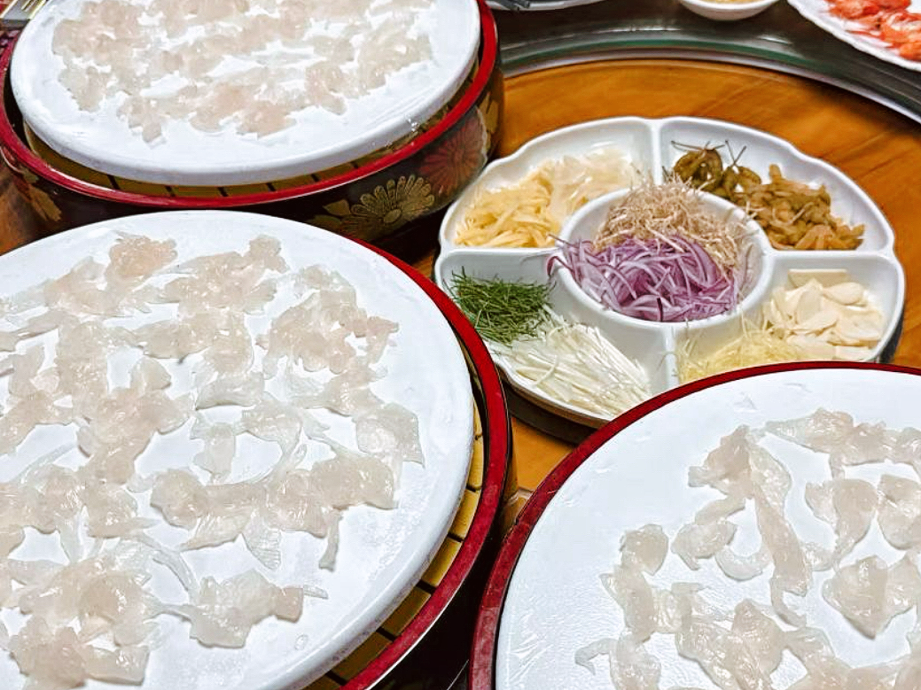 甲子鱼丸、白灼玻璃鱿鱼、竹笋煲、羔烧甜莲藕、香煎海胆粿、西闸秘制窑鸡、富贵大三仙、大粒参、姜葱炒蚝……