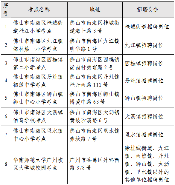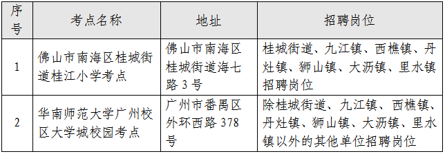 桂城街道、九江镇、西樵镇、丹灶镇、狮山镇、大沥镇、里水镇招聘岗位报到处详见《笔试准考证》,除上述单位以外的招聘岗位报到处与综合能力测评报到处一致,详见《综合能力测评准考证》。
