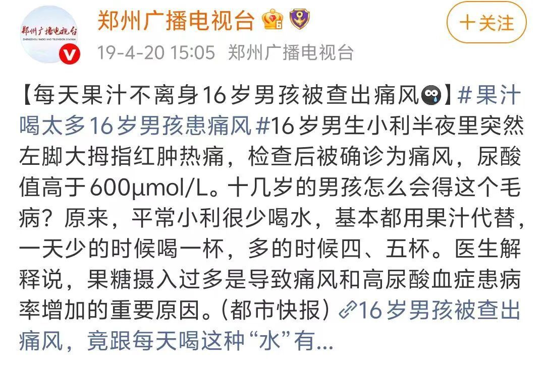 市面上售卖的果汁、饮料、奶茶,虽然嘌呤含量很低,但大部分都含有丰富的果糖。