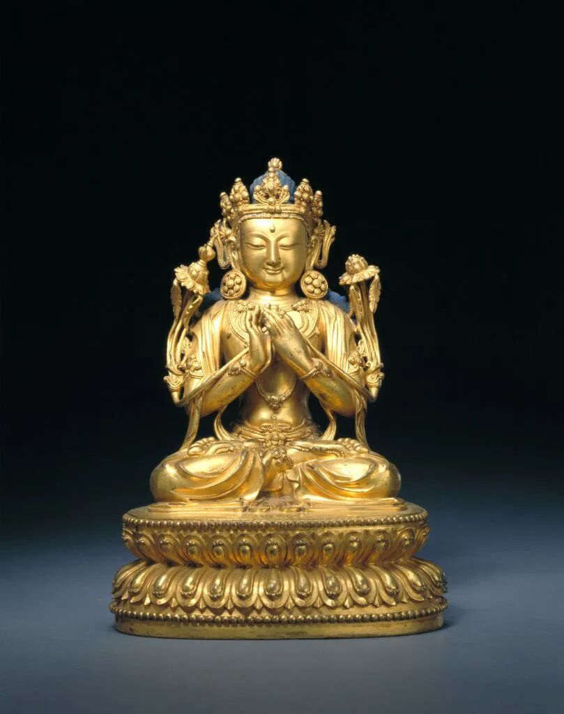 “永乐”款铜镀金弥勒像。来源/故宫博物院