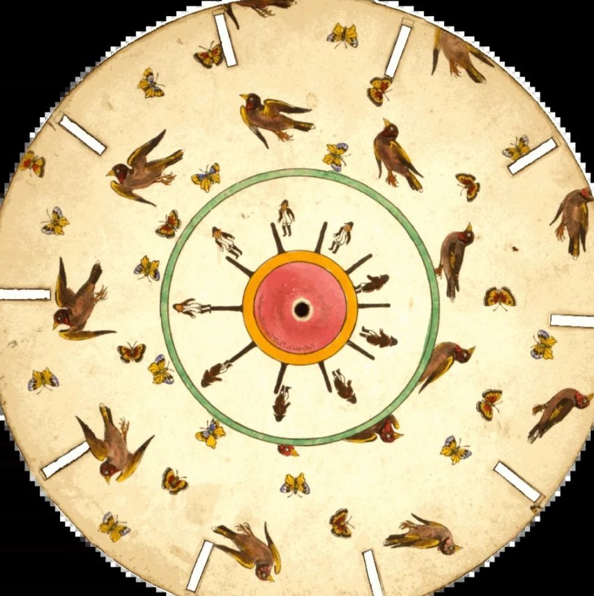 他躺在花园底的那个俯拍镜头,恰好构成了早期动画装置费纳奇镜的模样,转动起来会产生动画效果,这也是电影最早期的视觉暂留魔法。