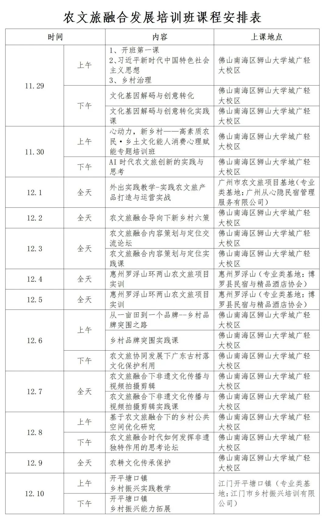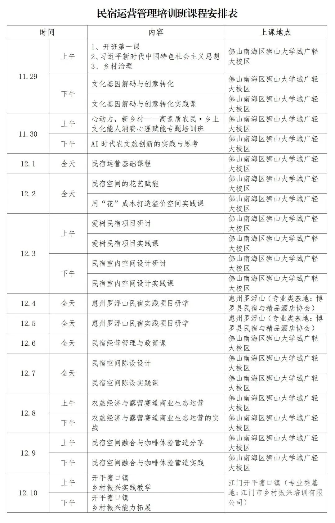 (3)实践研学与实地教学:组织学员前往佛山、惠州南昆山珠三角等地等现场教学点开展实地研学,深入体验“从文旅+民宿实践间到品牌”的全过程;了解品牌溯源体系、参与农文旅+民宿与非遗体验活动,激发学员在真实场景中形成创意与产业转化思维。