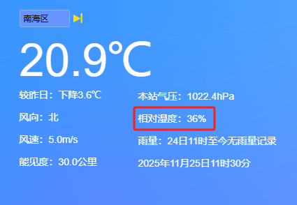 南海区相对湿度只有36%